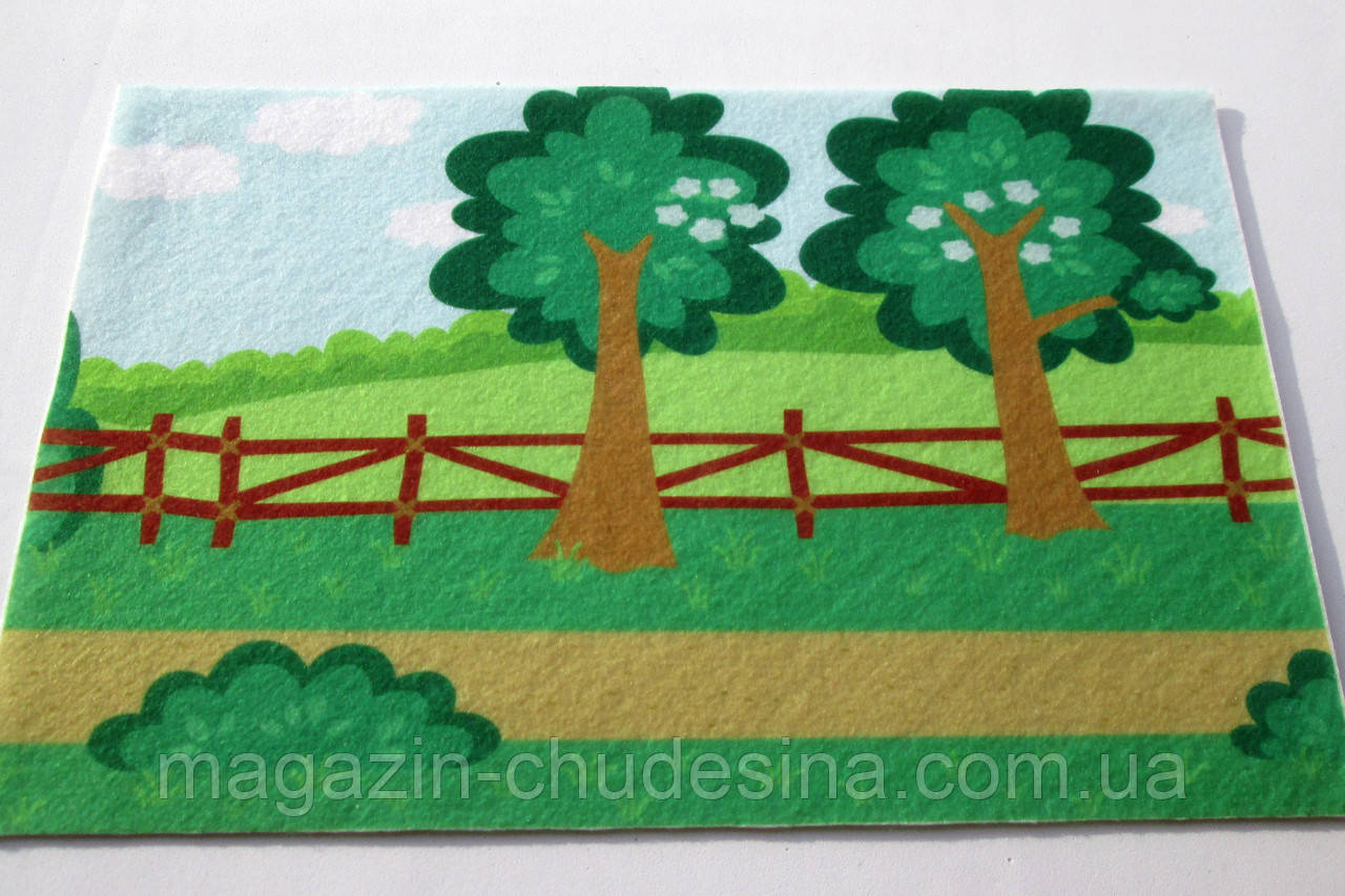 Фетр із малюнком принтом "Синій трактор, ягідки" ігровий фон А4 ПСМ 16