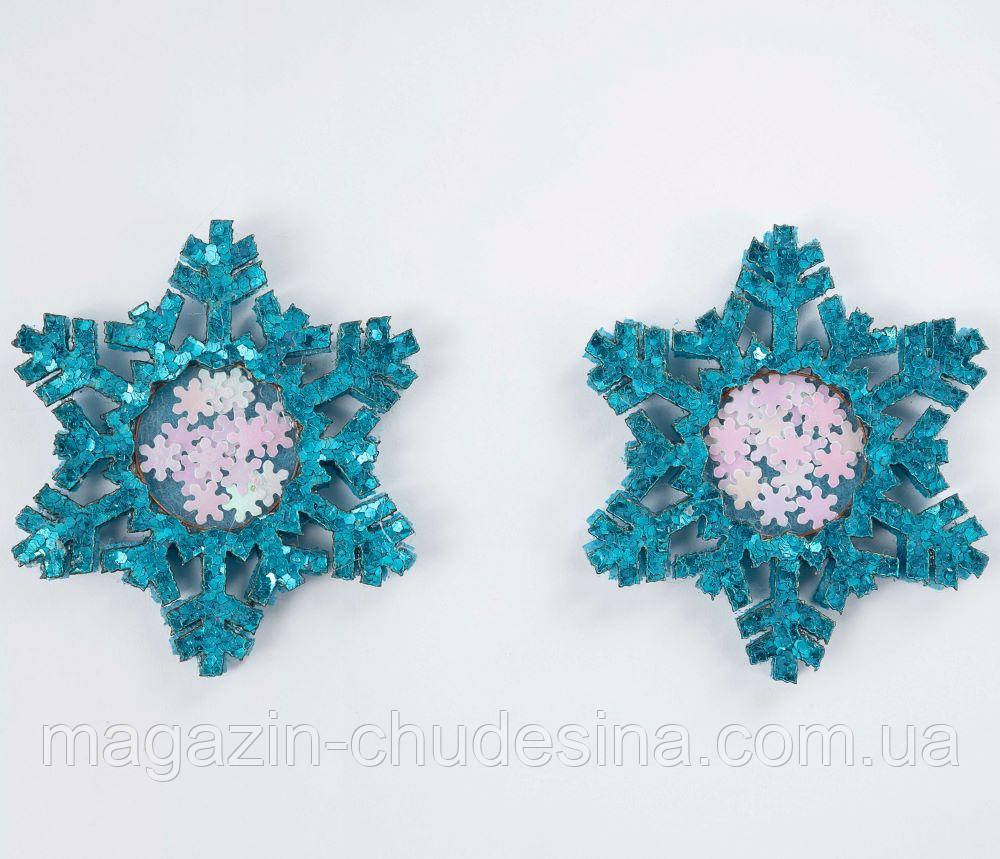 Патч шейкер декор серединка для шпильок і бантиків Сніжинка блакитна, набір 2 шт.